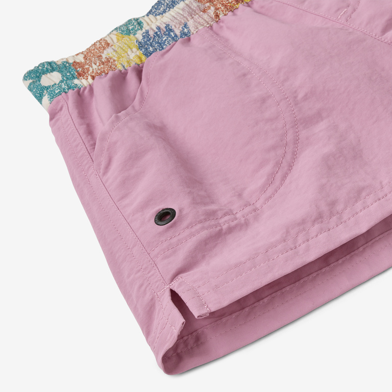 Fun and colorful, these kids�� water shorts have quick-drying fabric, self-draining pockets and a wide, elasticized waistband with an adjustable drawcord. Made of lightweight 100% recycled nylon with a durable water repellent (DWR) finish made without perfluorinated chemicals (PFCs/PFAS). Inseam is 3".