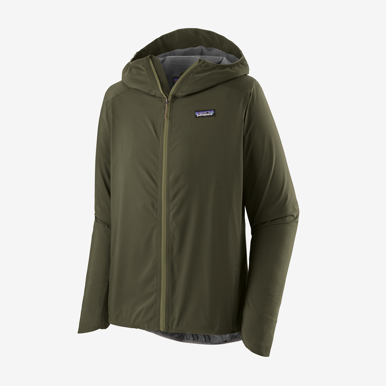 Breathable 100% recycled nylon fabric with stretch shrugs off wind and light precipitation, allowing unrestricted movement and eliminating the need for pit zips