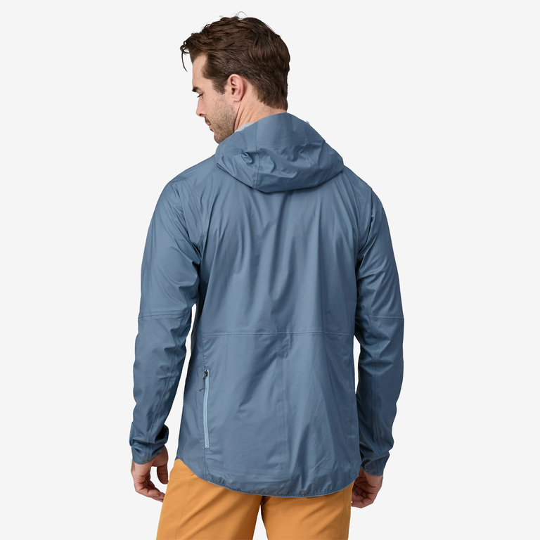 Jacket packs into secure rear pocket, or can be rolled into the cinch hood and tied around the waist with jacket arms