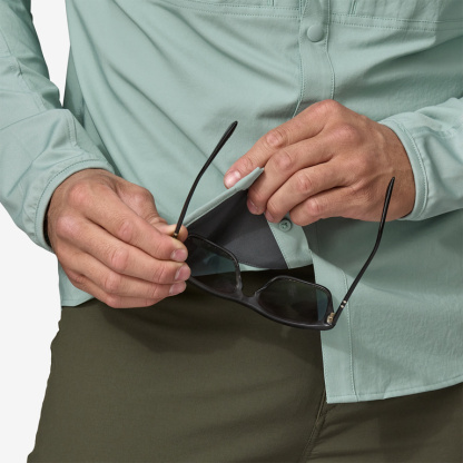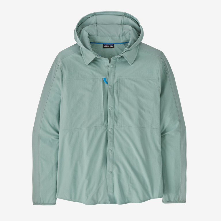 The versatile, quick-dry River Rambler Hybrid Sun Hoody pairs 40+ UPF sun protection with light, breathable, stretchy comfort. With a removable hood, integrated lens cleaner, roomy pockets, snap-down collar, hemo tab, longer hem and sleeves and HeiQ Pure odor control, it's the all-in-one for under the sun. Made in a Fair Trade Certified factory.