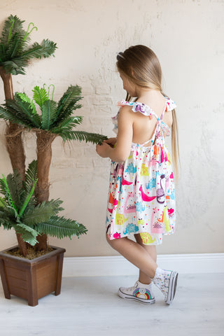 This dress will capture the whimsy and playfulness of your little ones. Kids will love the fun dinosaur print on this comfy cotton-blend dress. It is fun and playful which is perfect for little kids. Regular fit, with a ruffle sleeveless design. The waisted finish creates a gently flared skirt. Designed with an all-over print and 'Roar' slogans. Let your kids shine and feel the freshness while having this lovely dress. It is perfect for birthdays, summer or any kind of kid's party.