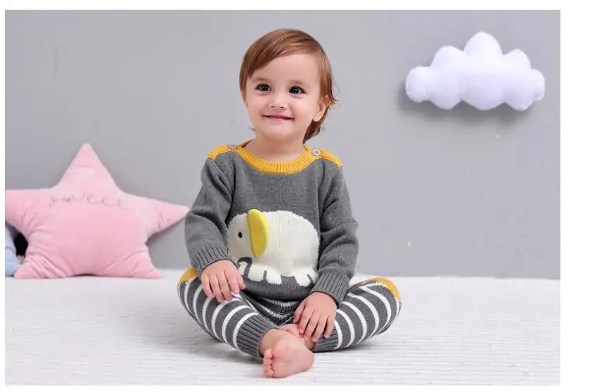 Cartoon Elephant Sweater Set