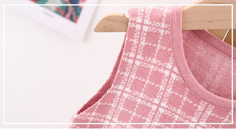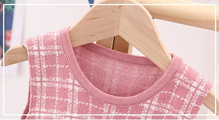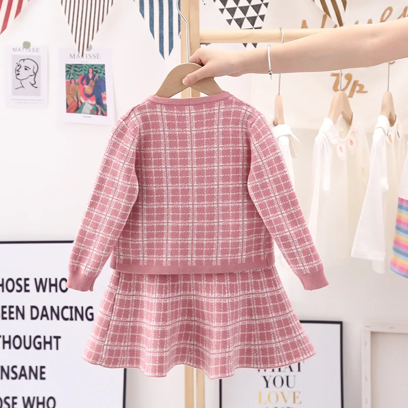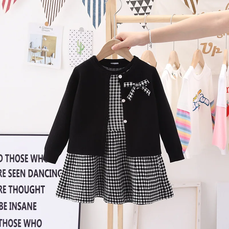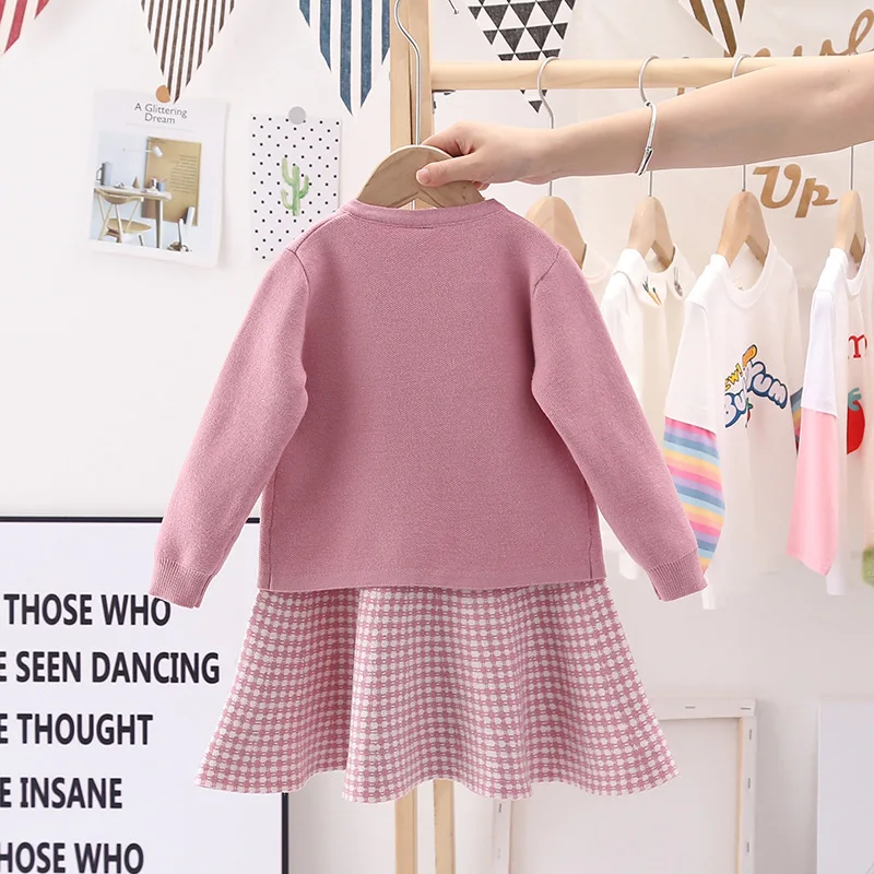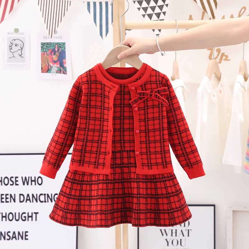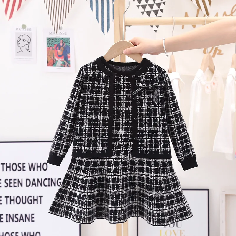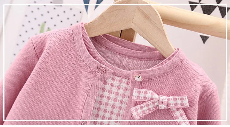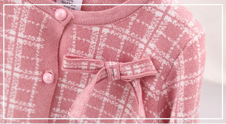 Essential seasonal layering piece for cooler days. A sweet knit detail making this knit cardigan and dress a classic piece to be passed down.  Featuring a ribbon design on the left front side of the cardigan and a sleeveless check pattern dress to enhance the cuteness of this smart-looking. It is perfect for any occasion such as birthdays, family gatherings. For any child who loves to look and feel and move like a beautiful and smart looking like their moms, we offer you these detailed dresses for your little girls.