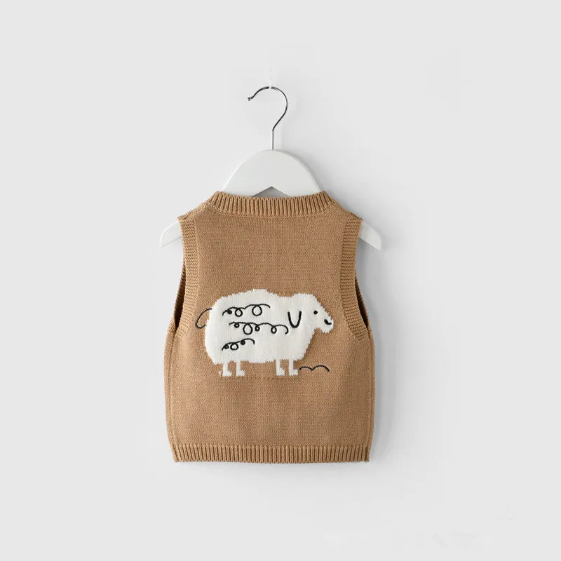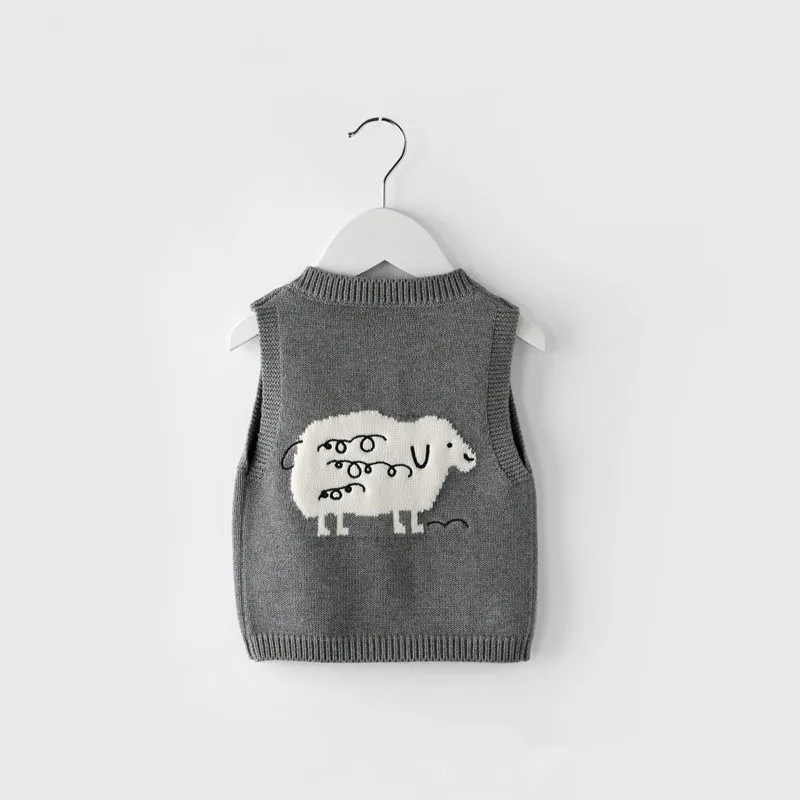 This cute knitted cotton vest with a sheep design is perfect for layering. It has buttons for easy wearing and changing. These vest sweaters are made of good quality and soft material. It is cozy and gives warmth to your baby.