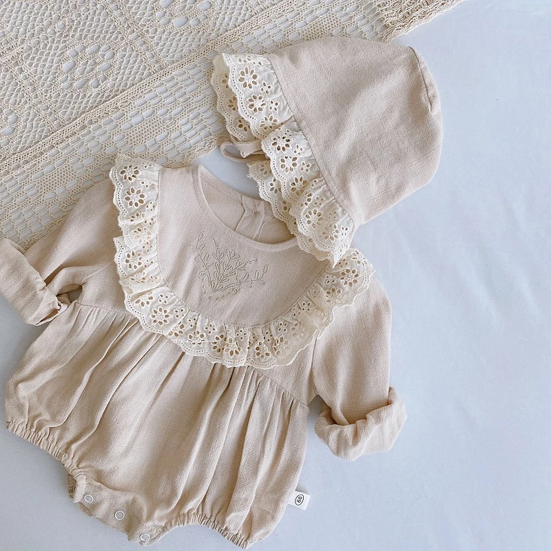 Dress your little one in this vintage lace romper and hat.