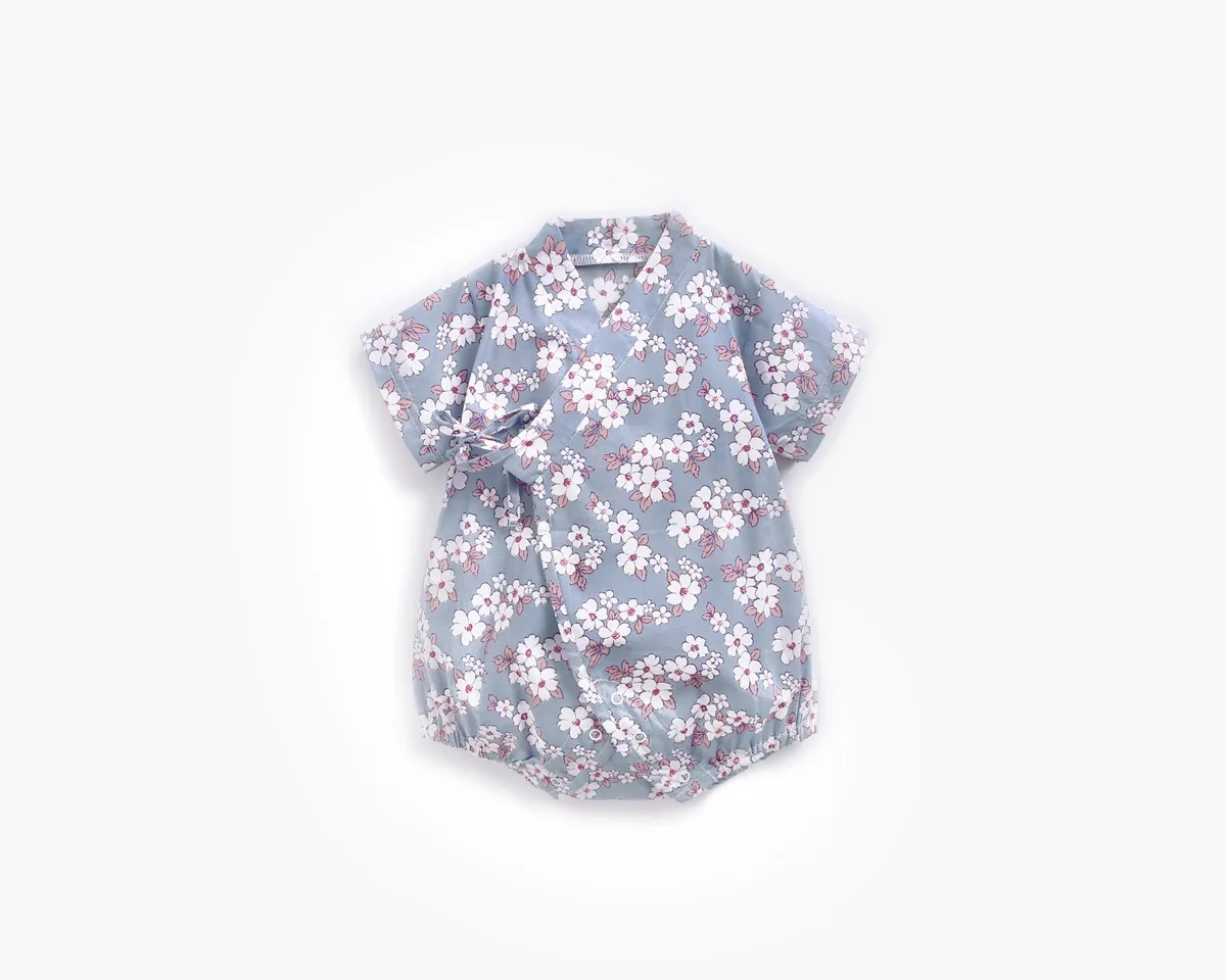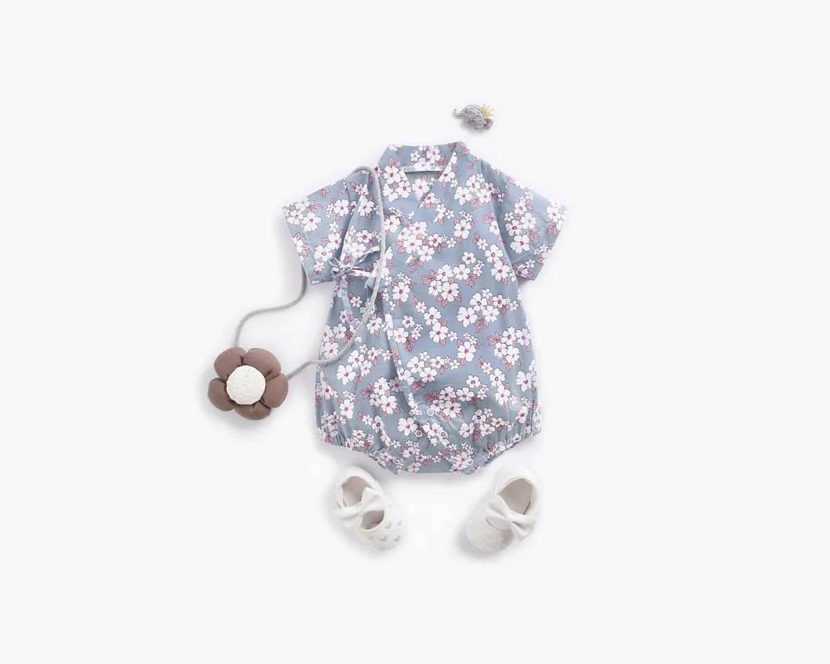A lovely option for your little one. This kimono romper makes dressing your baby easy by avoiding having to pull garments over the baby's head. It is made of soft cotton and polyester materials to make your little one comfortable.