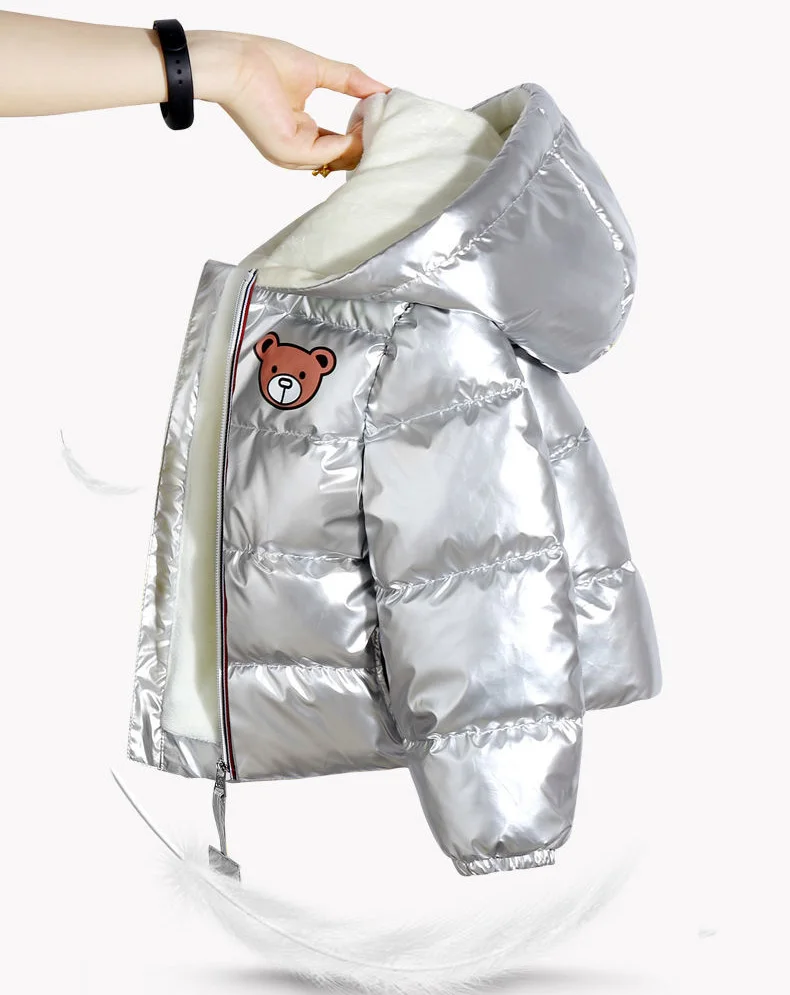 Keep your kids toasty warm and look stylish in a shimmering metallic style winter hooded padded jacket. Featuring hood and closure zip on the front. It is made from thick and soft fabric which is perfect for winters. A hooded puffer jacket to keep your little cozy and warm from breezy days.